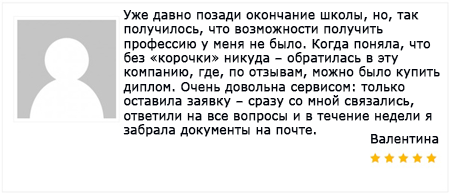 Учитывая нынешний ритм жизни и финансовое положение большинства из нас, получить подобное образование предоставляется возможным не каждому. Поэтому, единственно правильным и 100 % надёжным способом получить «корочку» является обращение в нашу компанию.